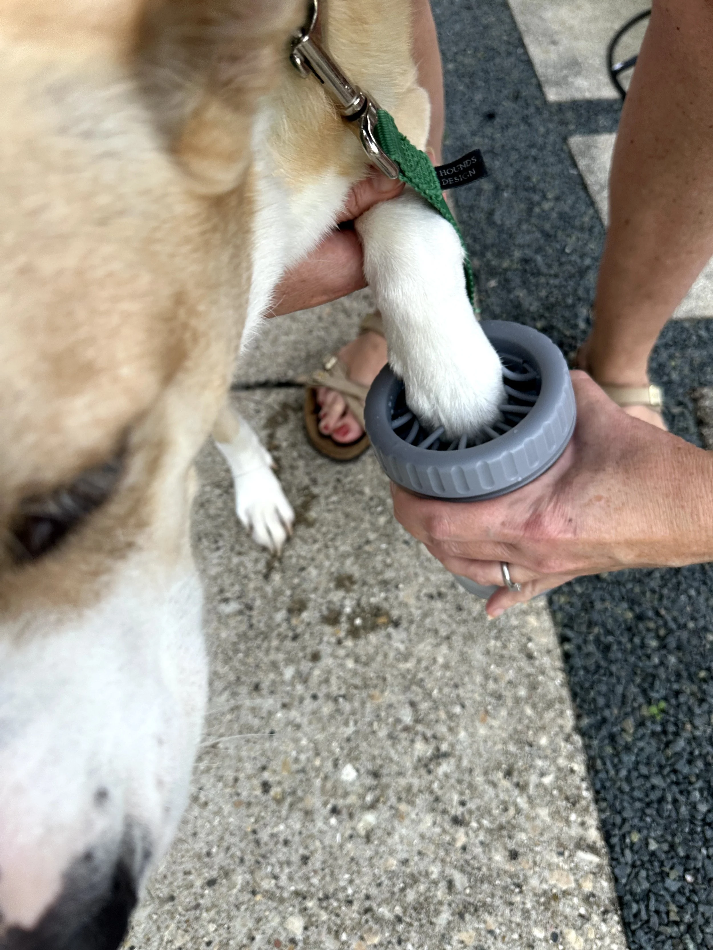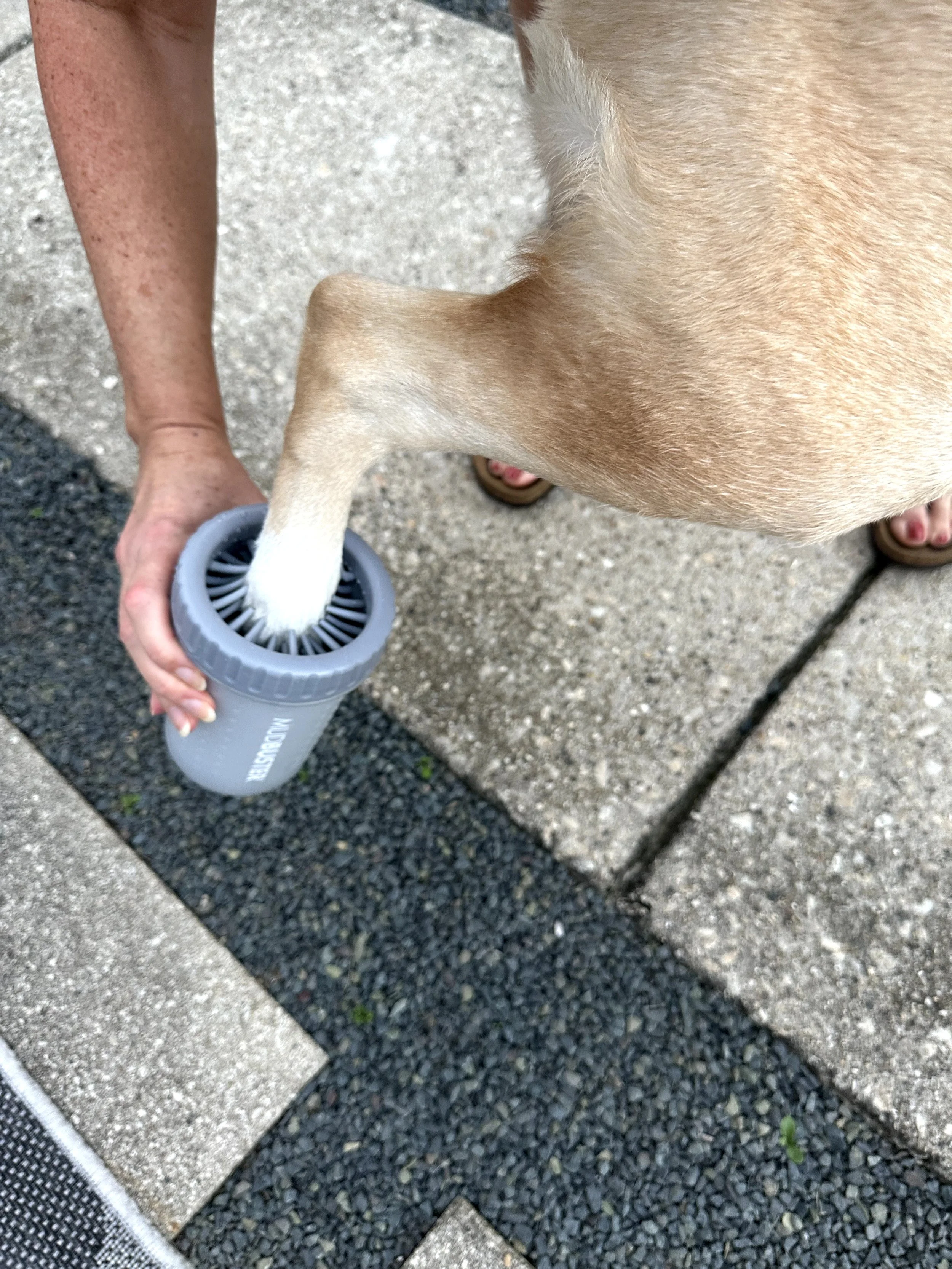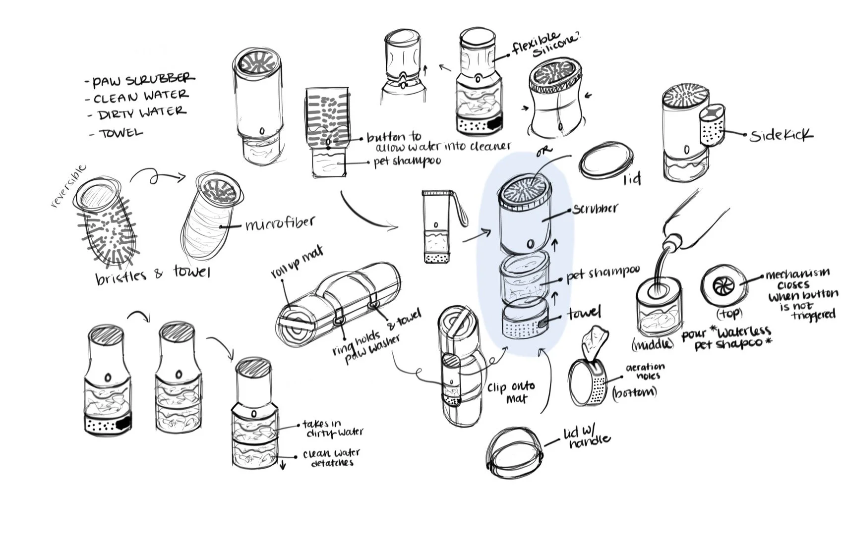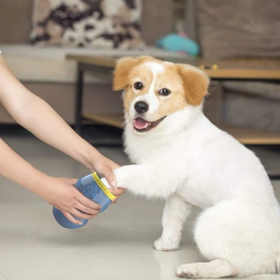 How might we design a portable dog paw cleaner that offers a hassle-free and enjoyable process for both pet owners and their furry companions?