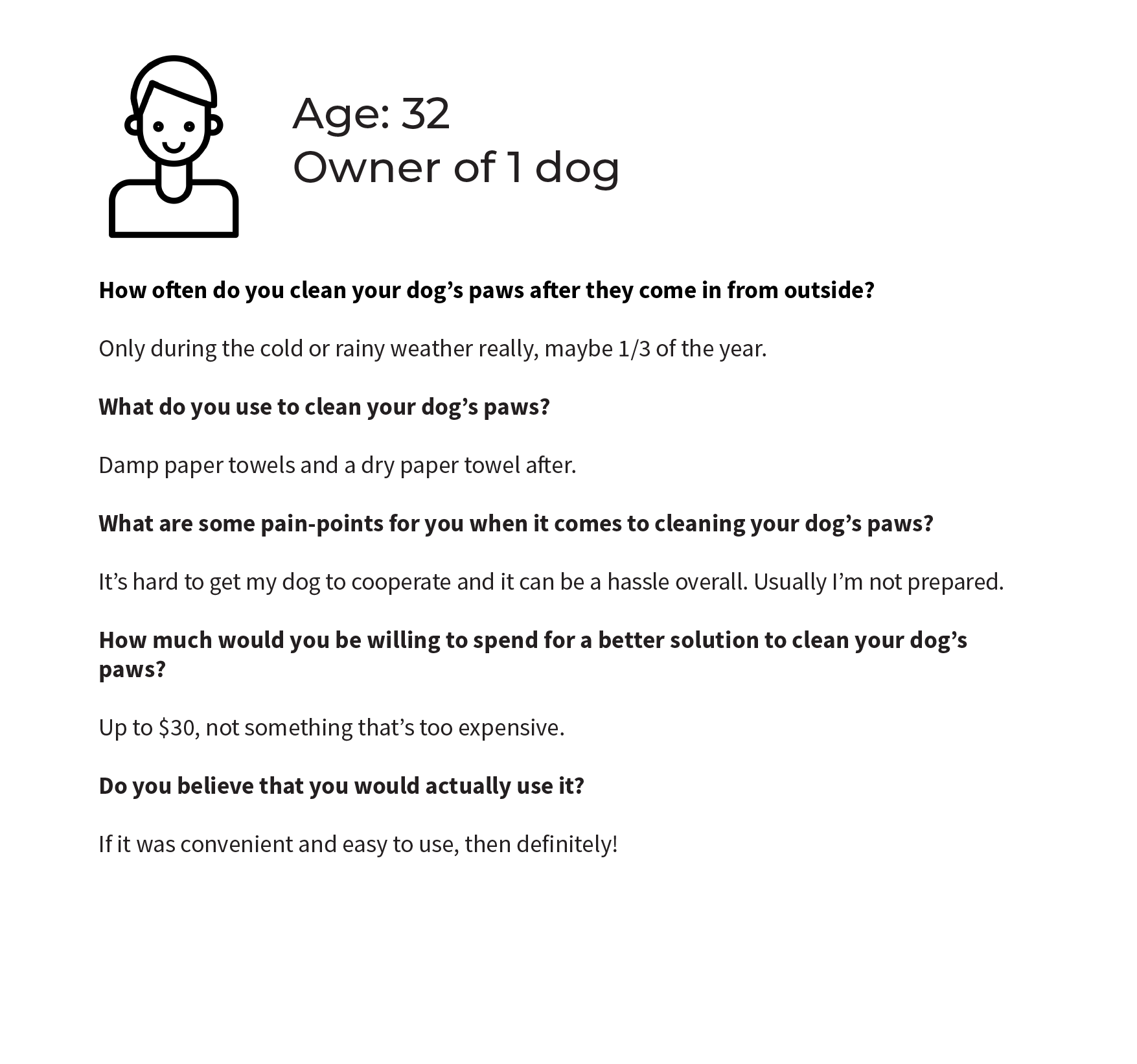 I talked with three dog owners to understand the methods they currently use to clean their dog’s paws.